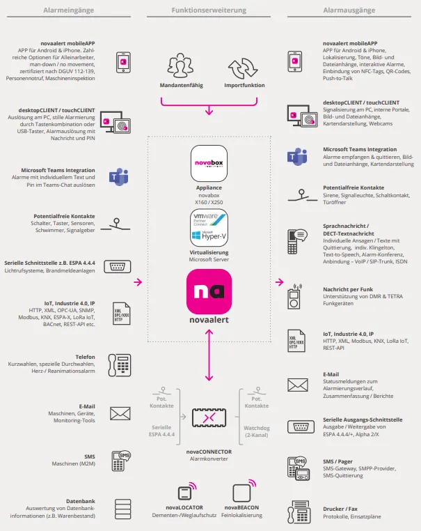 Schnittstellen zu bestehenden Systemen (IT-Monitoring, BMA, Lichtruf).