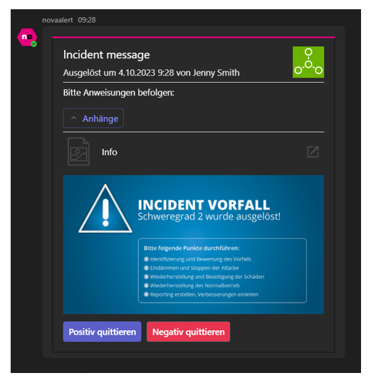 Quittierung (Acknowledge) und Rückmeldung im Teams-Client.