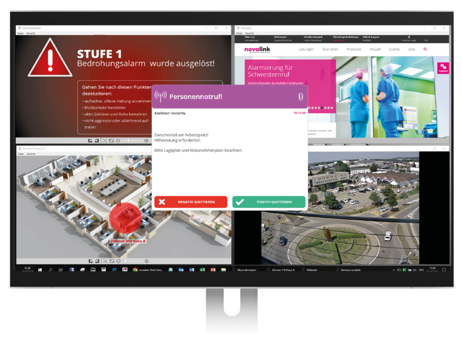 Stille Alarmierungssoftware ermöglicht unauffällige Hilferufe bei Bedrohungslagen, z. B. Frontdesk, Sozialdienst, Verwaltung.